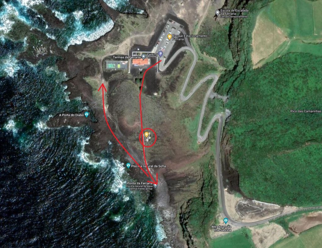 Si partís de Ponta Delgada, para llegar a la piscina de agua termal de Ponta Ferraria hay que ir por la carretera que va por toda la parte Sur de la isla, la EN1-1A.