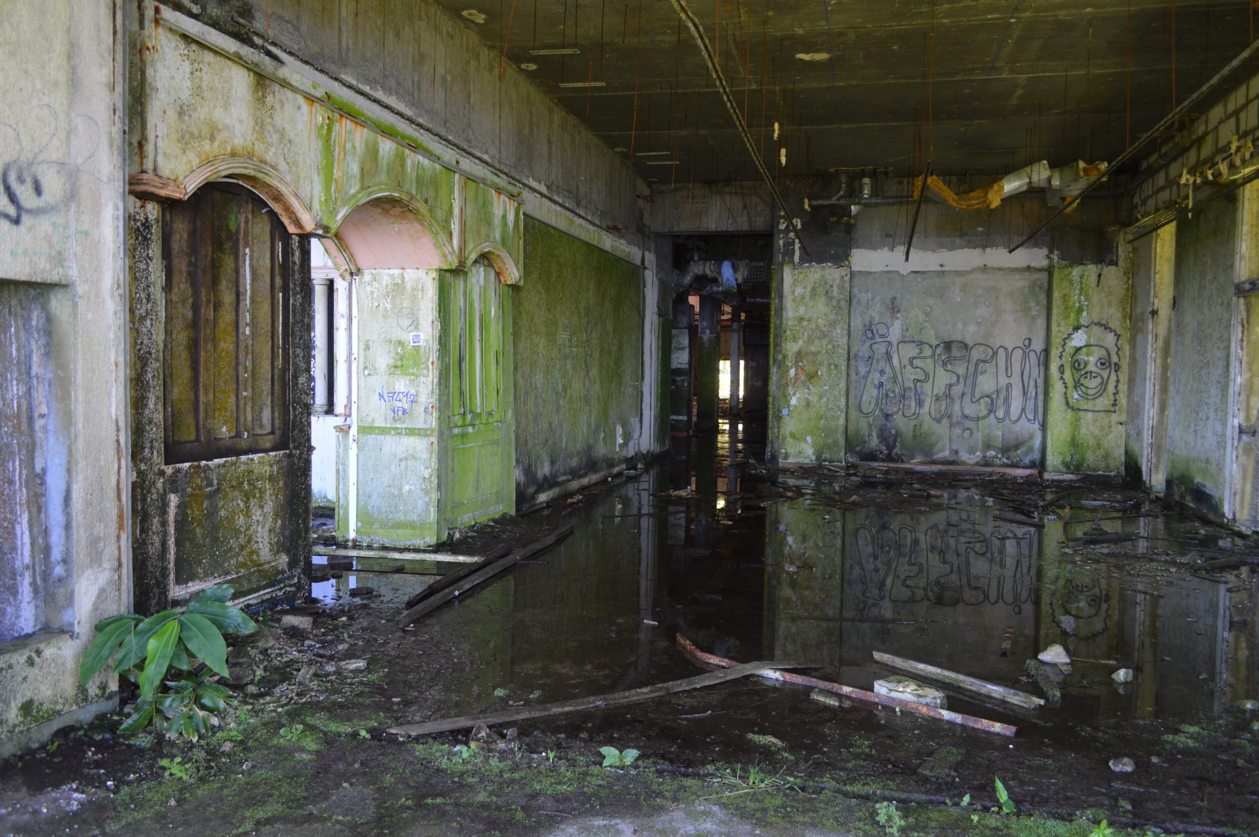 Prácticamente en frente de ese parking estaba el acceso al hotel a pie. Hay gente saltando para entrar al recinto, pero no es necesario acceder así porque la puerta está abierta y, a pesar de que haya muchos carteles prohibiendo el paso, todo el mundo los ignoraba.