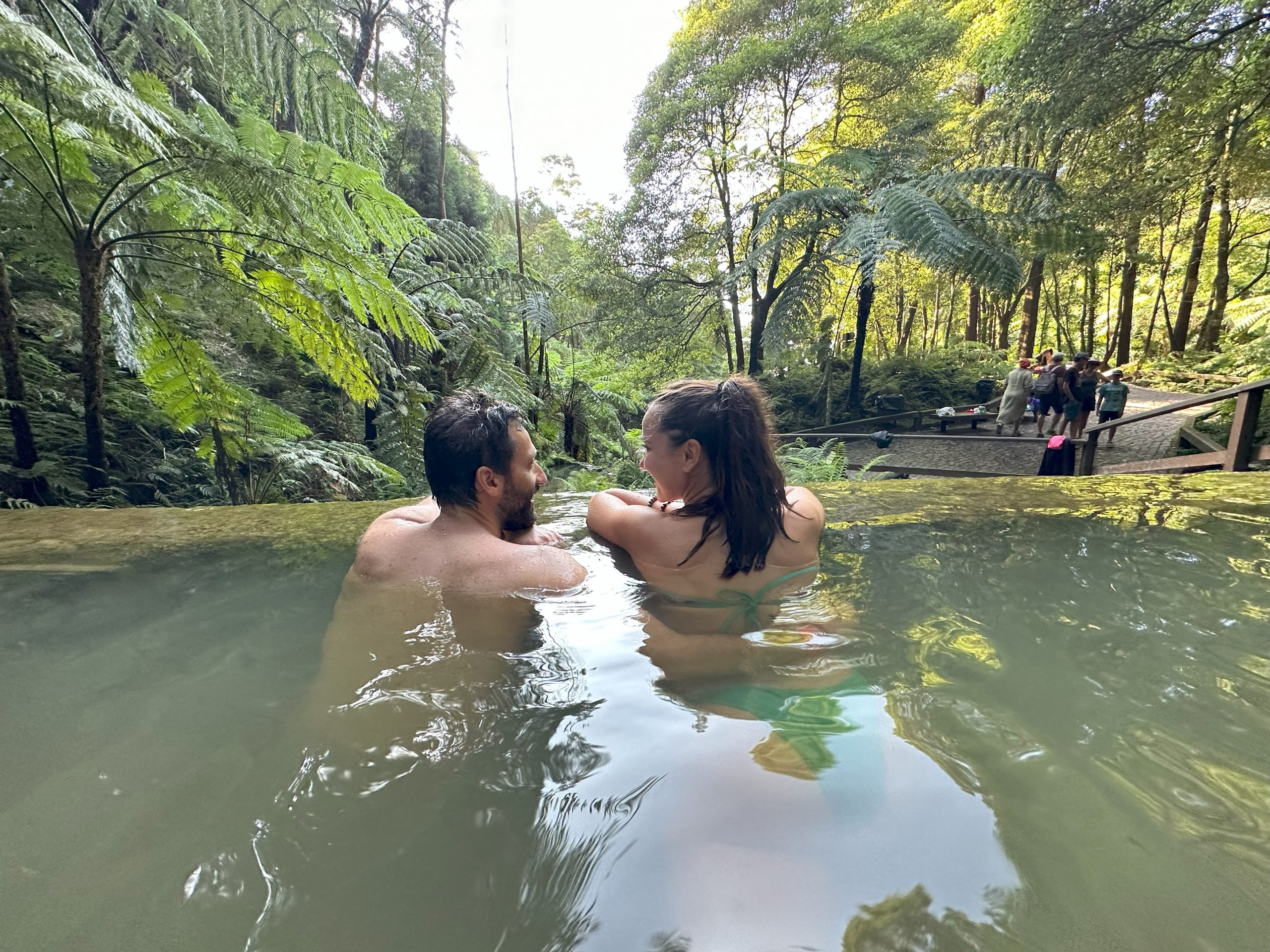 Reservamos a las 18 para darnos un baño termal en Caldeira Velha.