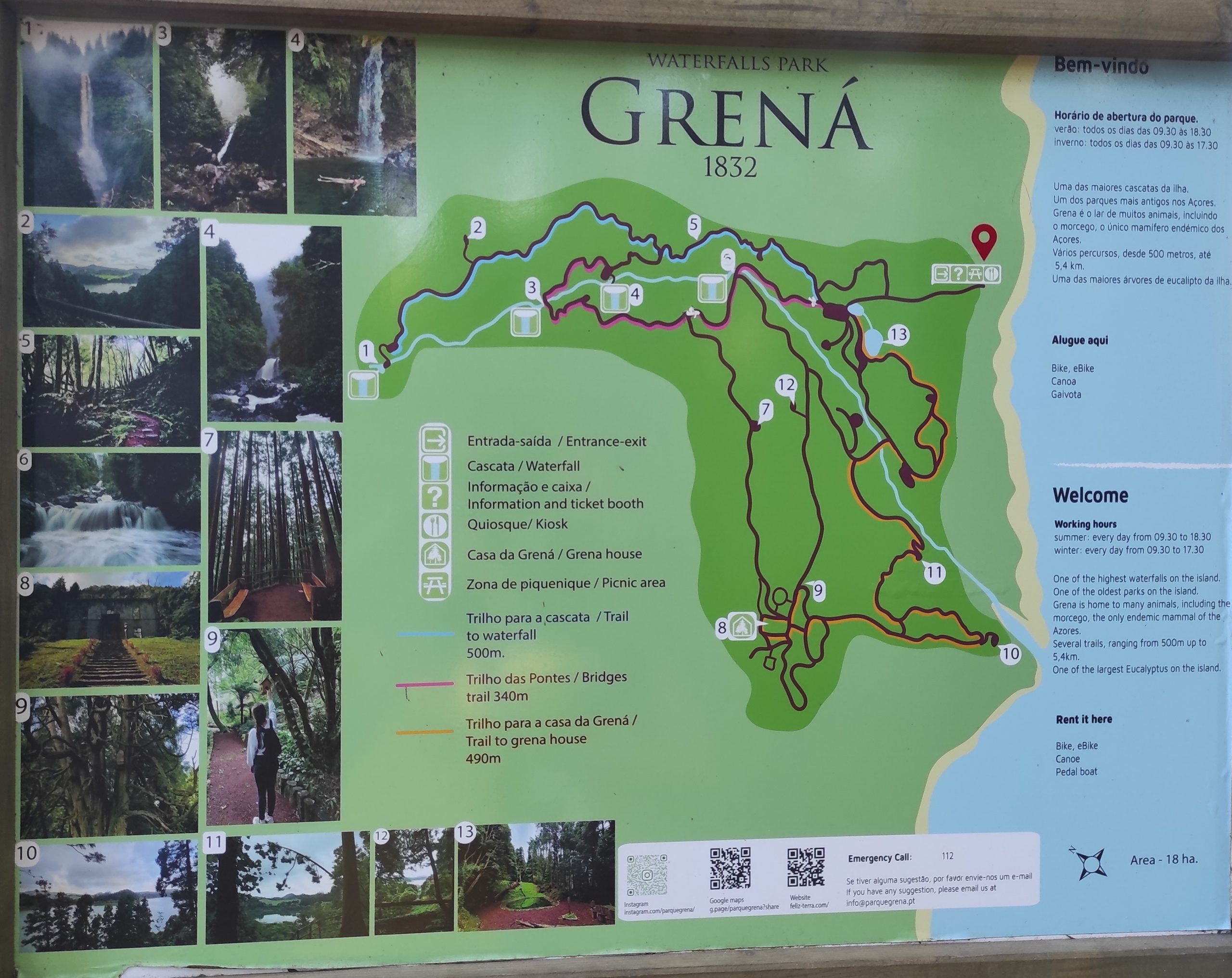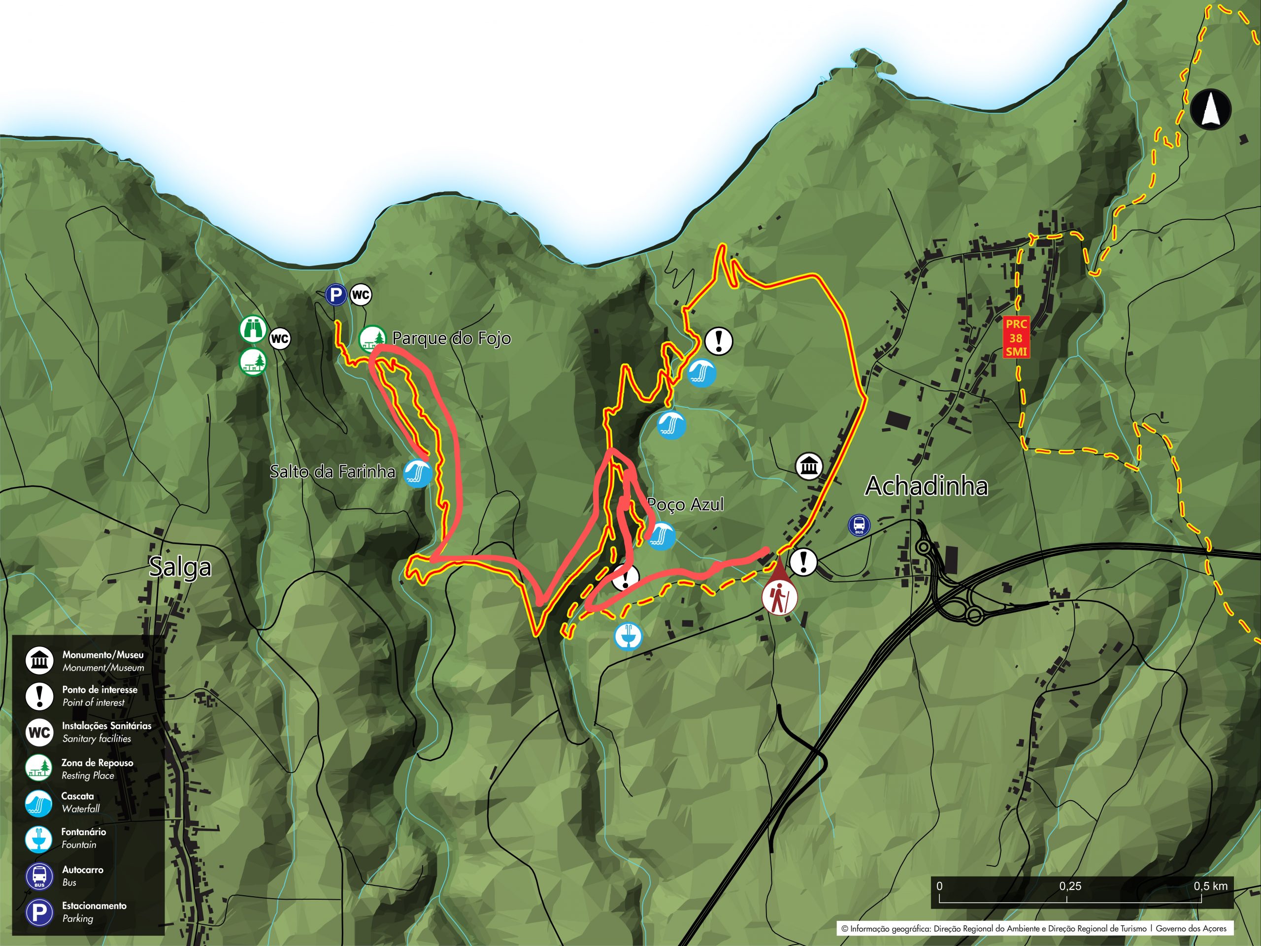La ruta exacta la podéis ver en la primera imagen, una línea roja hecha a mano en paralelo a la ruta original porque no hicimos la ruta entera. Aparcamos en la zona que está el muñequito de trekking y después fuimos directos al Poço azul y de ahí al Salto da Farinha. Volvimos al coche directos por la misma ruta (además podéis ir por la carretera -con cuidado- si queréis ahorraros los desniveles…):