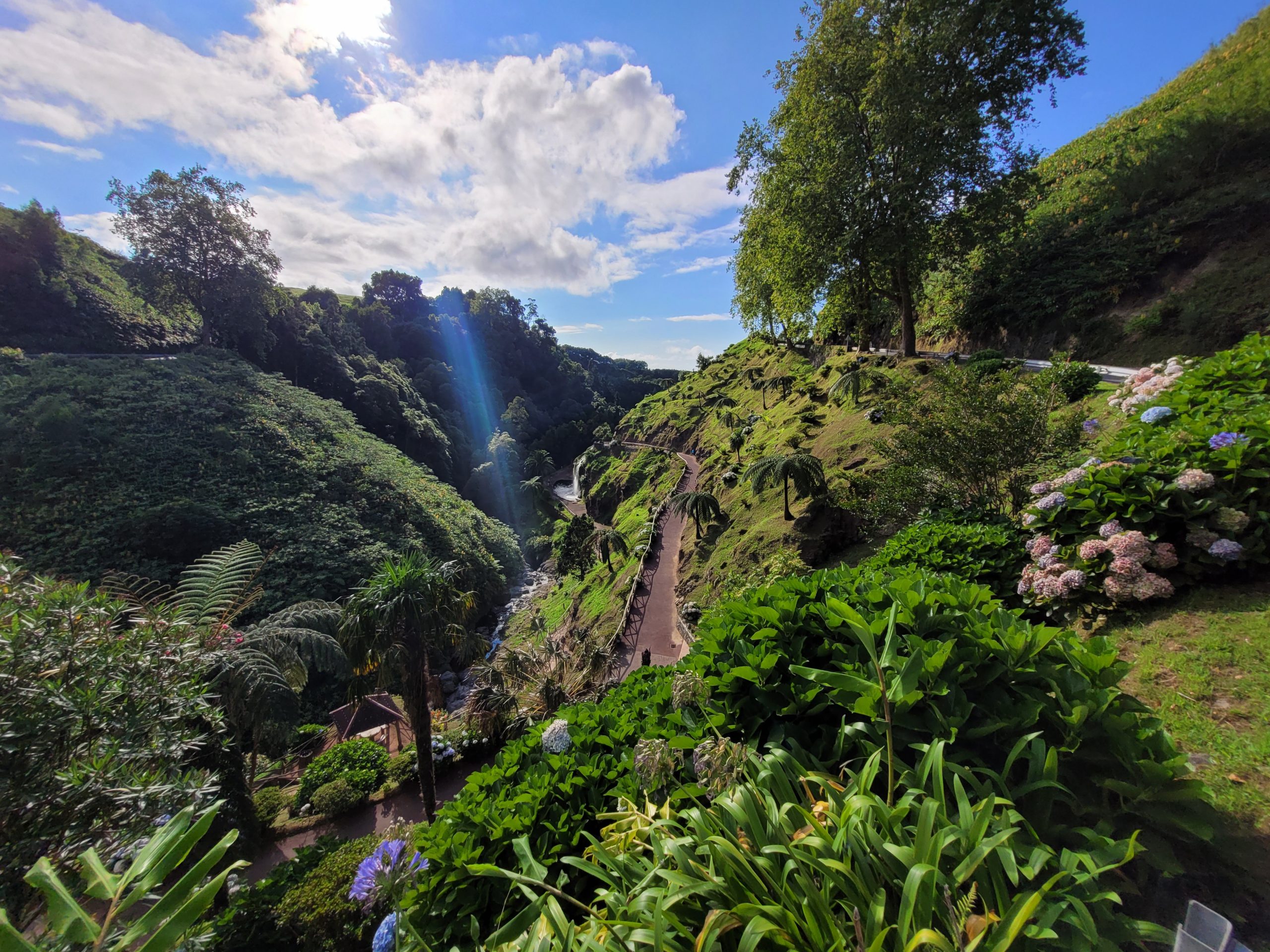 Saldremos ahora hacia el parque natural Ribeira dos Caldeiros, un lugar impresionantemente verde con otra cascada que nos supondrá verlo aproximadamente una hora: