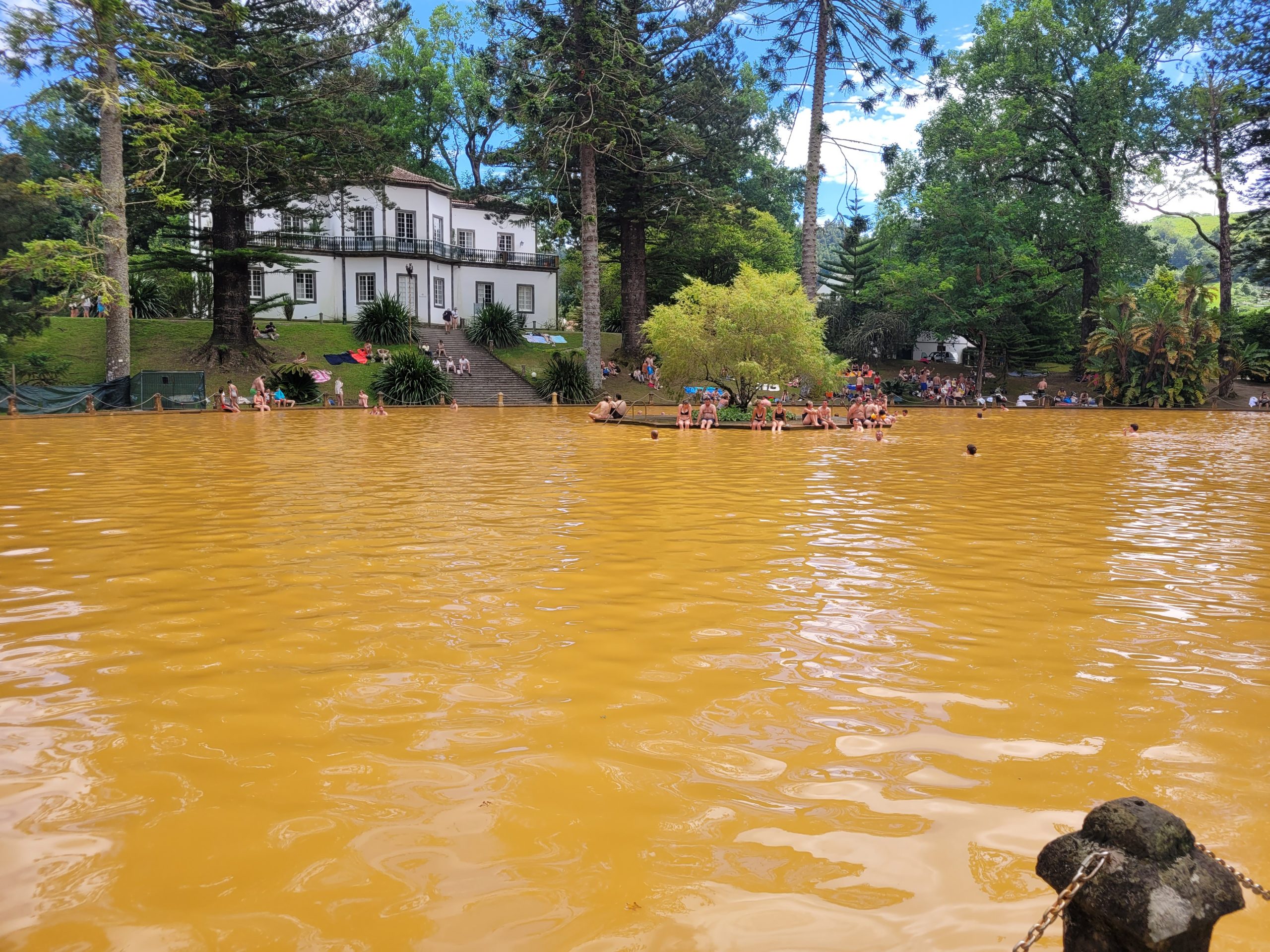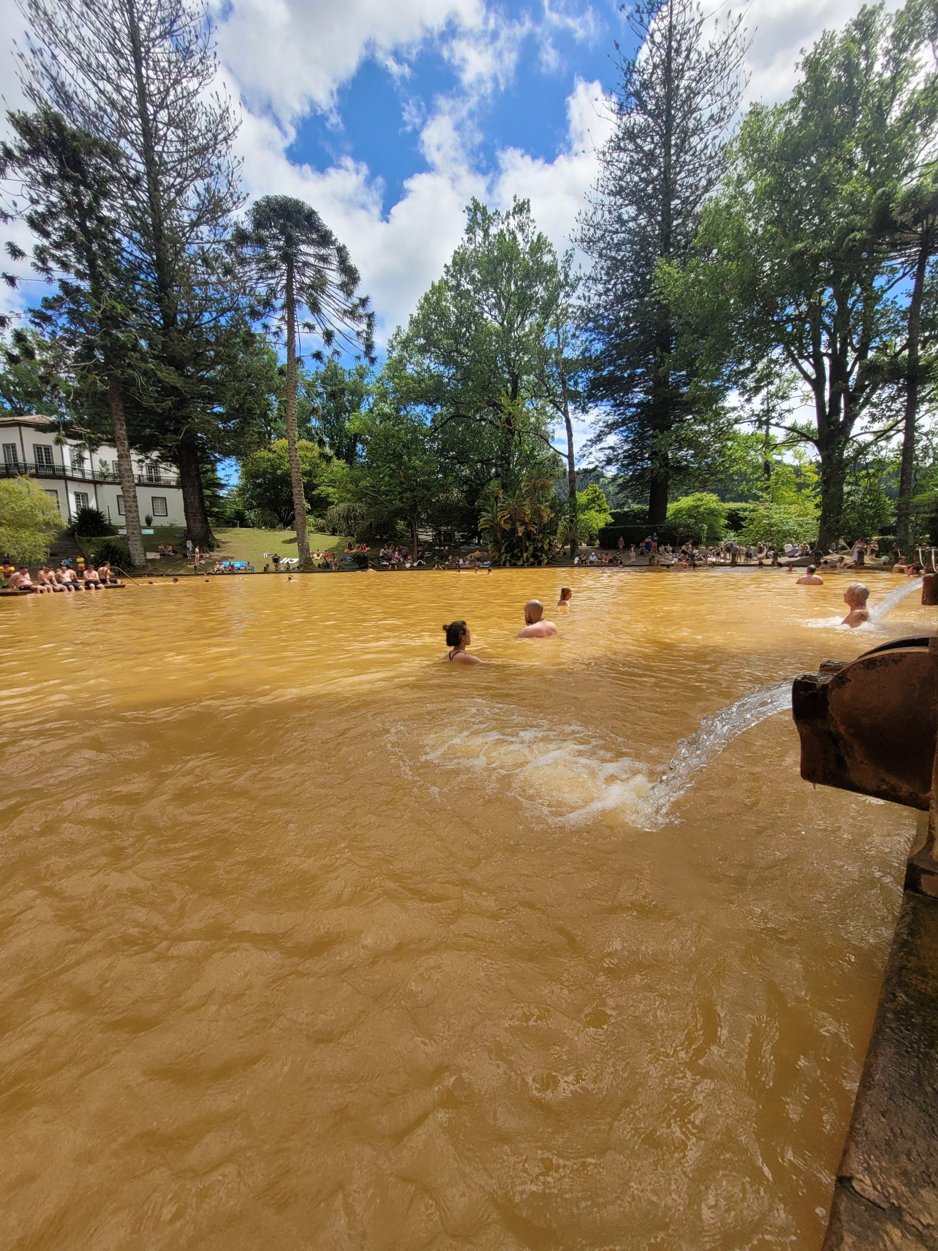 Ojito con el bañador, como sea blanco, saldrá rojo del hierro que tienen las aguas. Si preferís bañaros vestidos (no vais a tener alternativa, lo siento :p ) llevad uno viejo u oscuro que, en general, parecía que no se teñían. El mío fue directamente a la basura después de los 4 baños termales que nos dimos (Este, el de Caldeira Velha, el de la Poça da Dona Beija y el del Jardín Botánico Terra Nostra Garden)