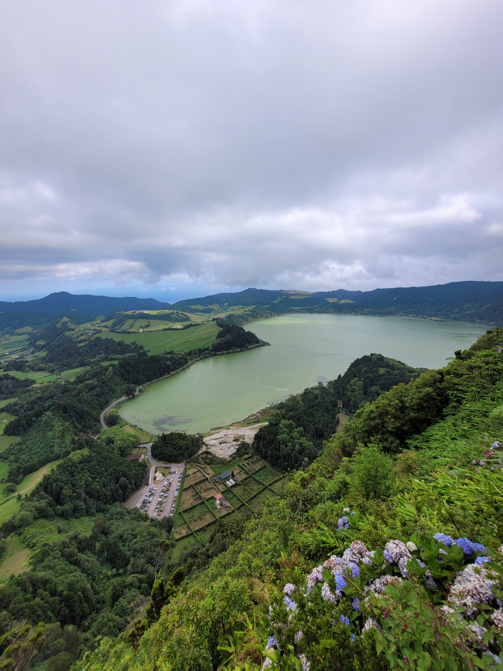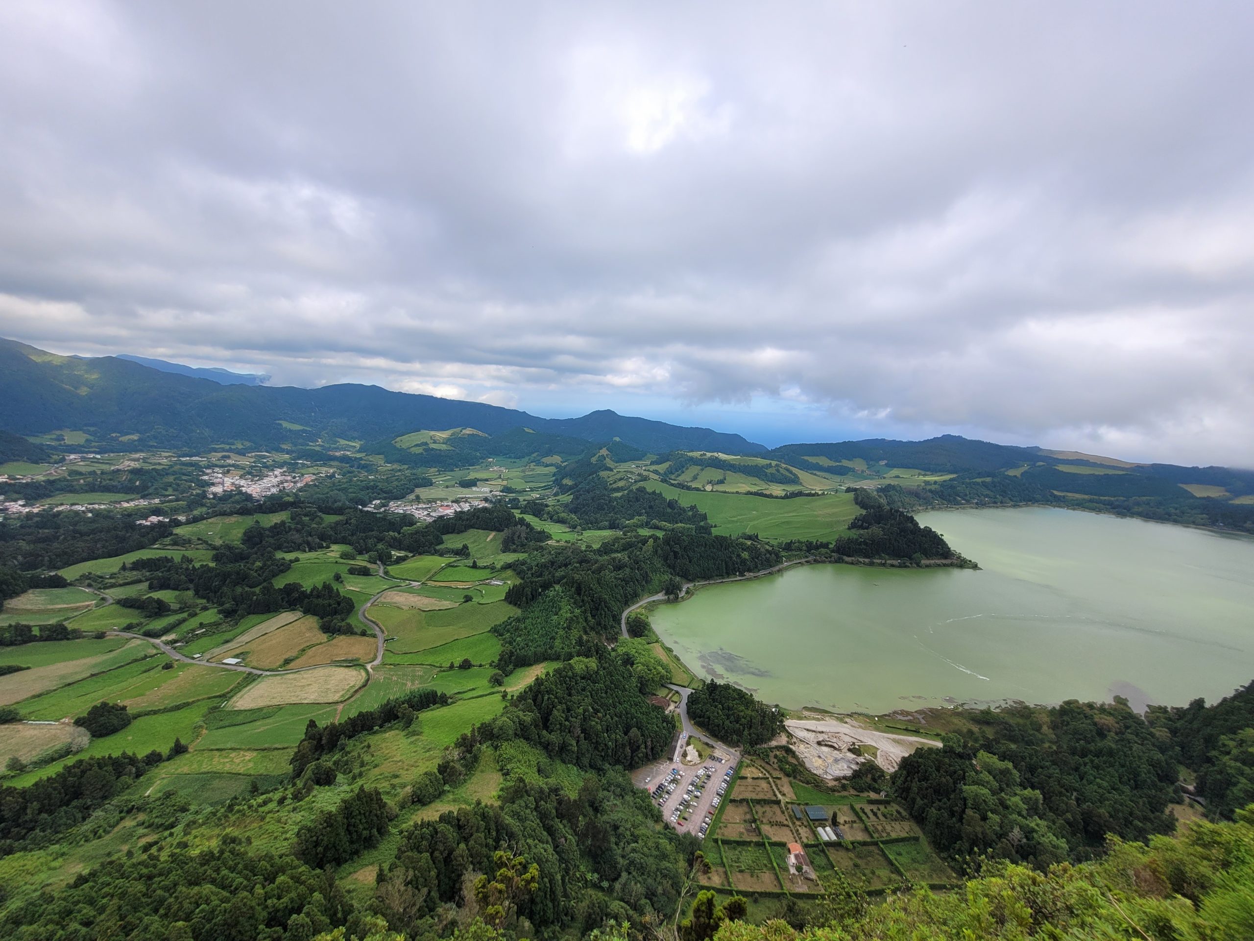 Desde el Mirador del Pico do Ferro os podéis acercar a ver desde arriba la Cascata do Grená -que luego veremos desde abajo-, desde donde también se ve el Lagoa das Furnas: