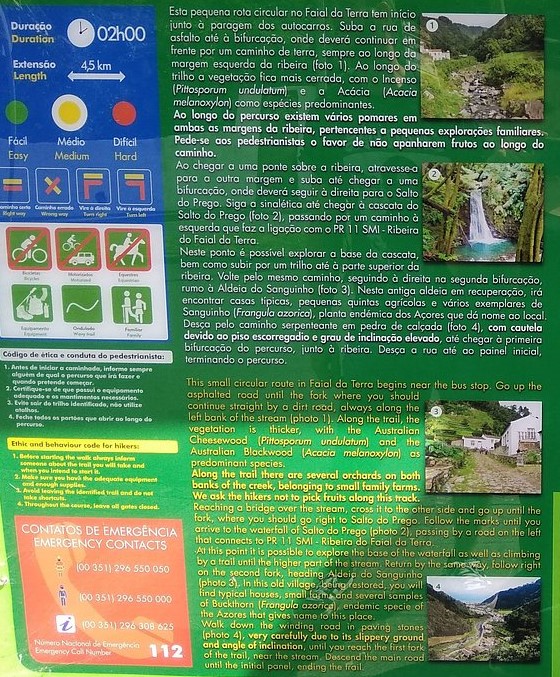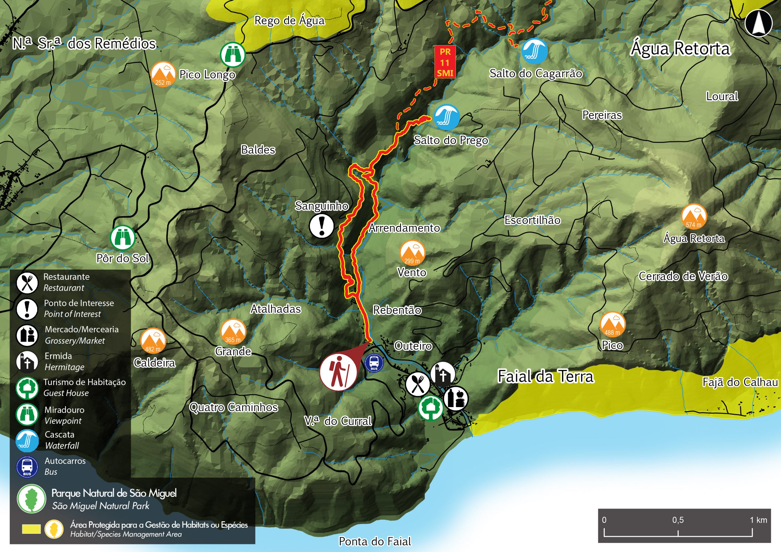 | Trayecto y ruta de la cascada «Salto do Prego» | 17:00 | 02:30 |